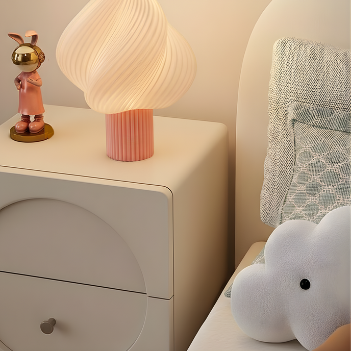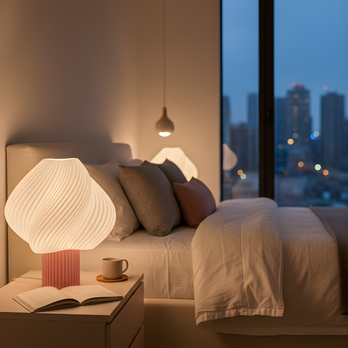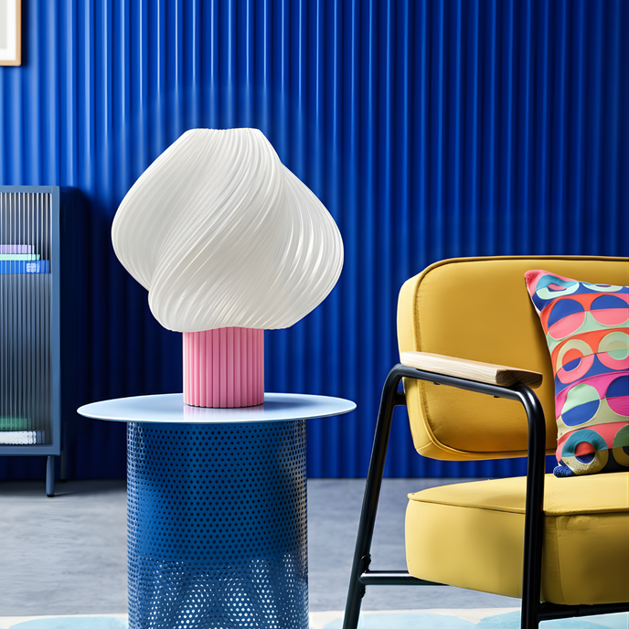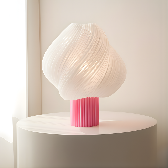 - Design organic & premium – formă fluidă, sculpturală, cu textură spiralată care difuzează lumina uniform; perfectă pentru interioare nordice, japandi, minimaliste sau naturale.