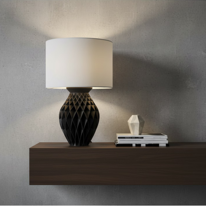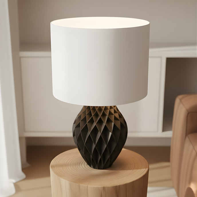 Kora este o veioză decorativă premium, creată prin imprimare 3D și realizată dintr-un material ecologic obținut din plante (biopolimer pe bază de amidon de porumb). Baza sa sculpturală, cu textură spiralată, oferă un aspect modern și elegant, în timp ce abajurul cilindric alb completează perfect designul minimal și rafinat.