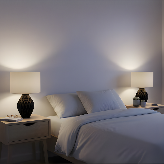 - Iluminare ambientala calda – difuzeaza lumina uniform, perfecta pentru relaxare, citit sau atmosfera de seara.