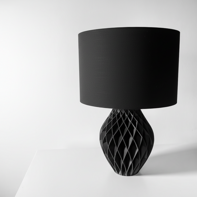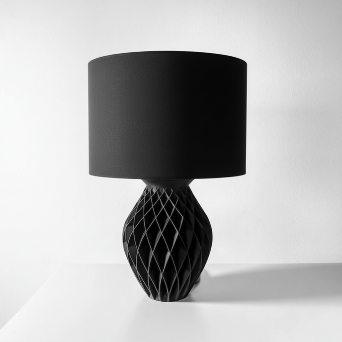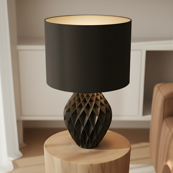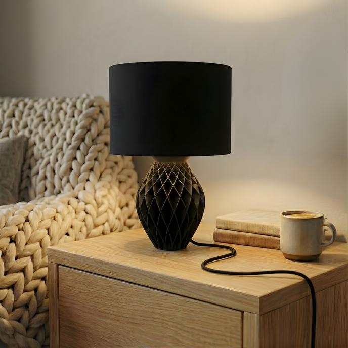 Kora este o veioză decorativă premium, creată prin imprimare 3D și realizată dintr-un material ecologic obținut din plante (biopolimer pe bază de amidon de porumb). Baza sa sculpturală, cu textură spiralată, oferă un aspect modern și elegant, în timp ce abajurul cilindric negru completează perfect designul minimal și rafinat.
